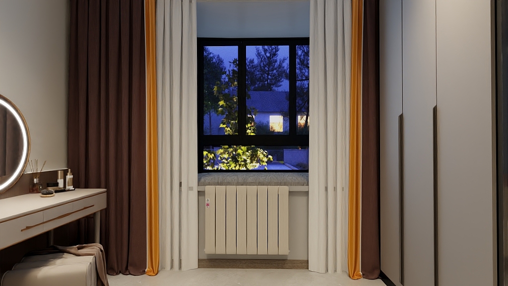 銅色暖氣片與暖黃色、淡綠色等墻面顏色相搭配,可以營造出溫馨而浪漫的氛圍。