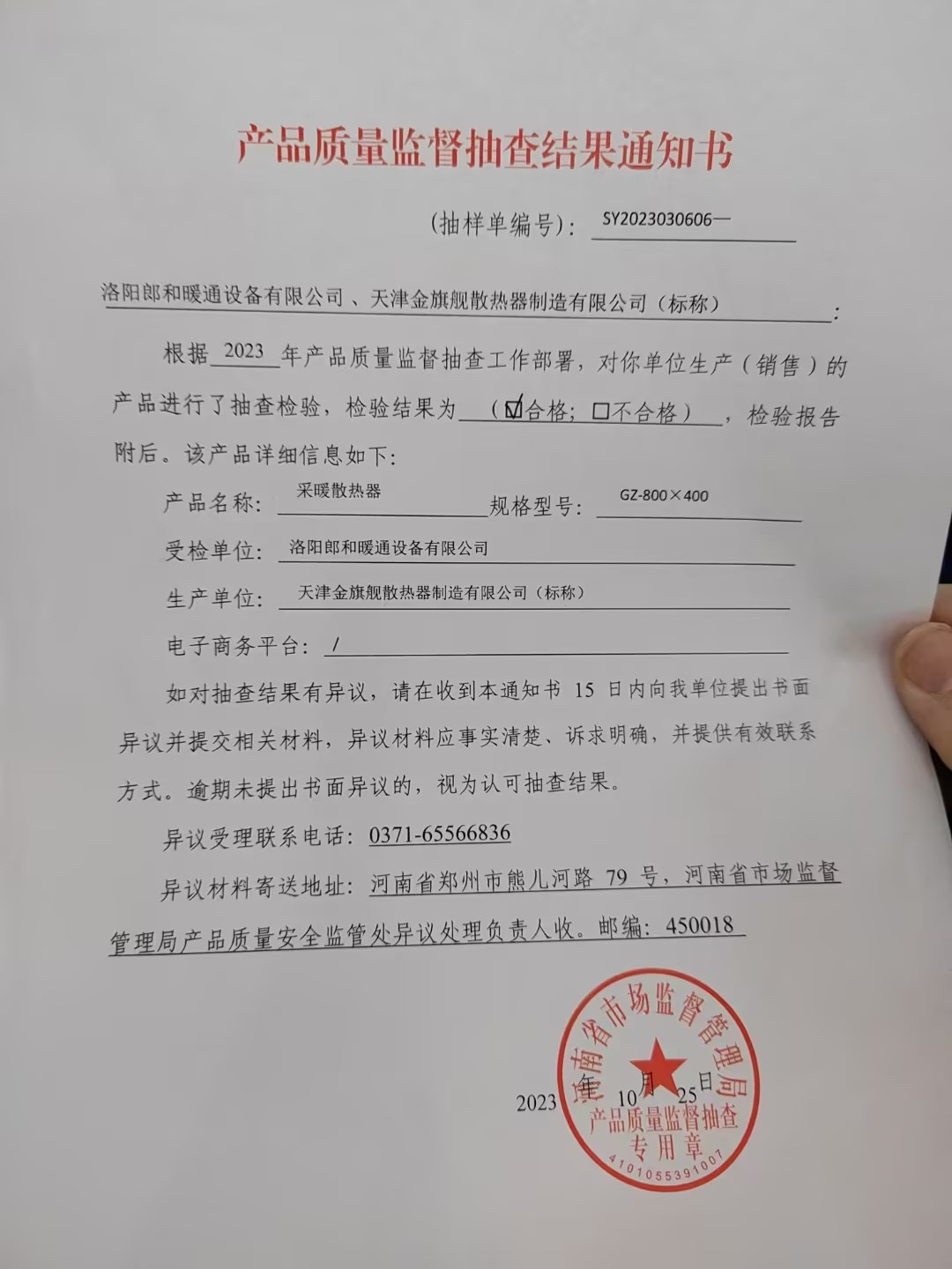 經(jīng)受住檢驗(yàn)的暖氣片才是好產(chǎn)品(河南省市場(chǎng)監(jiān)督管理局抽查質(zhì)檢金旗艦采暖散熱器)