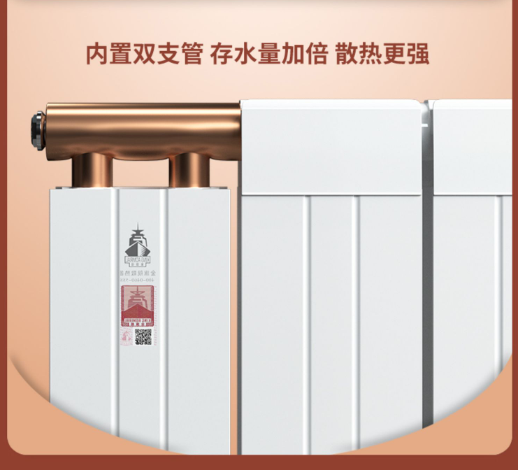 2.耐腐蝕性強(qiáng):銅鋁復(fù)合暖氣片表面處理采用先進(jìn)的陽(yáng)極氧化、滲銅等工藝,表面涂覆塑料粉末進(jìn)行定影處理,能有效防止暖氣片發(fā)生氧化,延長(zhǎng)使用壽命。