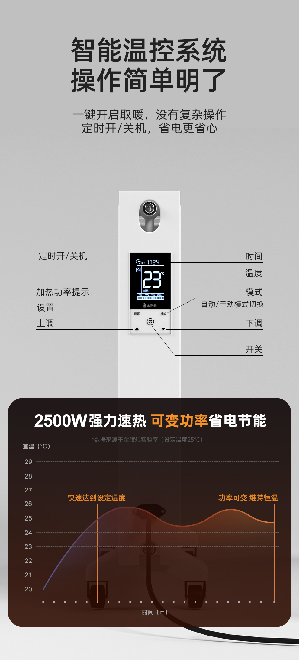模式選擇:許多智能電暖器提供多種加熱模式(如節(jié)能模式、快速加熱模式等),用戶可以根據(jù)實際需求切換不同的模式。
