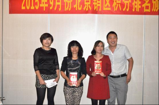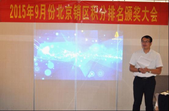 會(huì)議的第二階段,大會(huì)隆重舉行了2015年度9月份北京區(qū)積分排名頒獎(jiǎng)儀式,將大會(huì)氛圍推向最高潮,獲獎(jiǎng)的朋友們喜不自勝,在現(xiàn)場(chǎng)熱烈的掌聲中分享獲獎(jiǎng)感言以及優(yōu)秀的經(jīng)營(yíng)理念。未獲獎(jiǎng)的朋友紛紛表示,將積極進(jìn)取做好北京區(qū)市場(chǎng)銷(xiāo)售,下次走上領(lǐng)獎(jiǎng)臺(tái)?! ?/p>